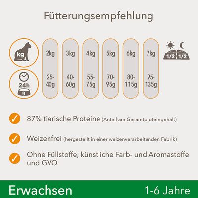 - Полноценный корм для взрослых кошек (1-6 лет)