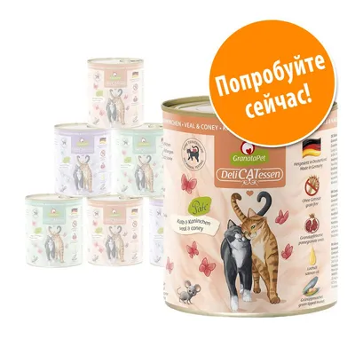 С GranataPet DeliCatessen вы можете быть уверены, что ваша кошка получает здоровое, подходящее всем видам сбалансированное питание.