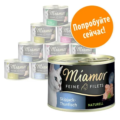 Легкоусвояемый влажный кошачьи корм Miamor изысканное филе Naturelle с разным типом мяса в собственном соку. Низкое содержание жира идеально подходит для кошек с чувствительным пищеварениемподробнее