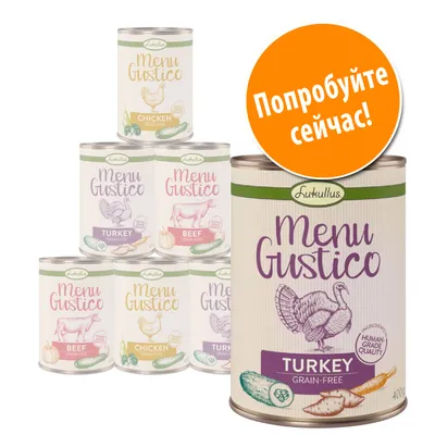 Lukullus Menu Gustico - это беззерновой корм, котрый производится из ингредиентов самого высокого качества. Побалуйте Вашего питомца натуральным влажным кормом!